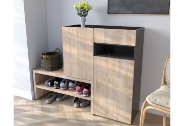 Тумба для обуви Moreli RS-4 с дверцами, полками и ящиком 85 см дуб сонома / антрацит