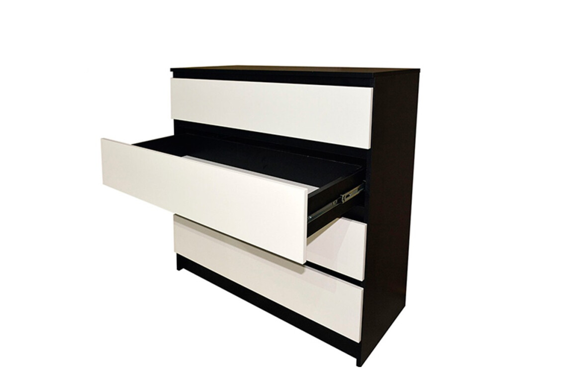 Комод Svit Mebliv с 4 ящиками – это идеальное решение для тех, кто ценит функциональность и стиль в интерьере. С его помощью вы сможете организовать пространство, сохраняя порядок и уют. Ширина в 100 см и высота 103 см делают его универсальным элементом мебели, который легко впишется в различные стили оформления. Чёрно-белый цвет придаёт комоду современный вид, а лаконичный дизайн позволяет ему гармонично сочетаться с другими предметами мебели. Комод оснащён четырьмя вместительными ящиками, которые обеспечивают достаточное пространство для хранения вещей. Телескопические направляющие полного выдвижения гарантируют лёгкость и комфорт при использовании, а отсутствие ручек добавляет изделию изящества и минимализма.