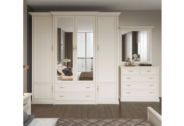 - мебель часто украшена позолотой, резьбой, выполненное патинирование; присутствуют также стеклянные вставки и филенчатые фасады;