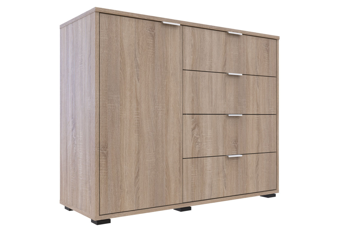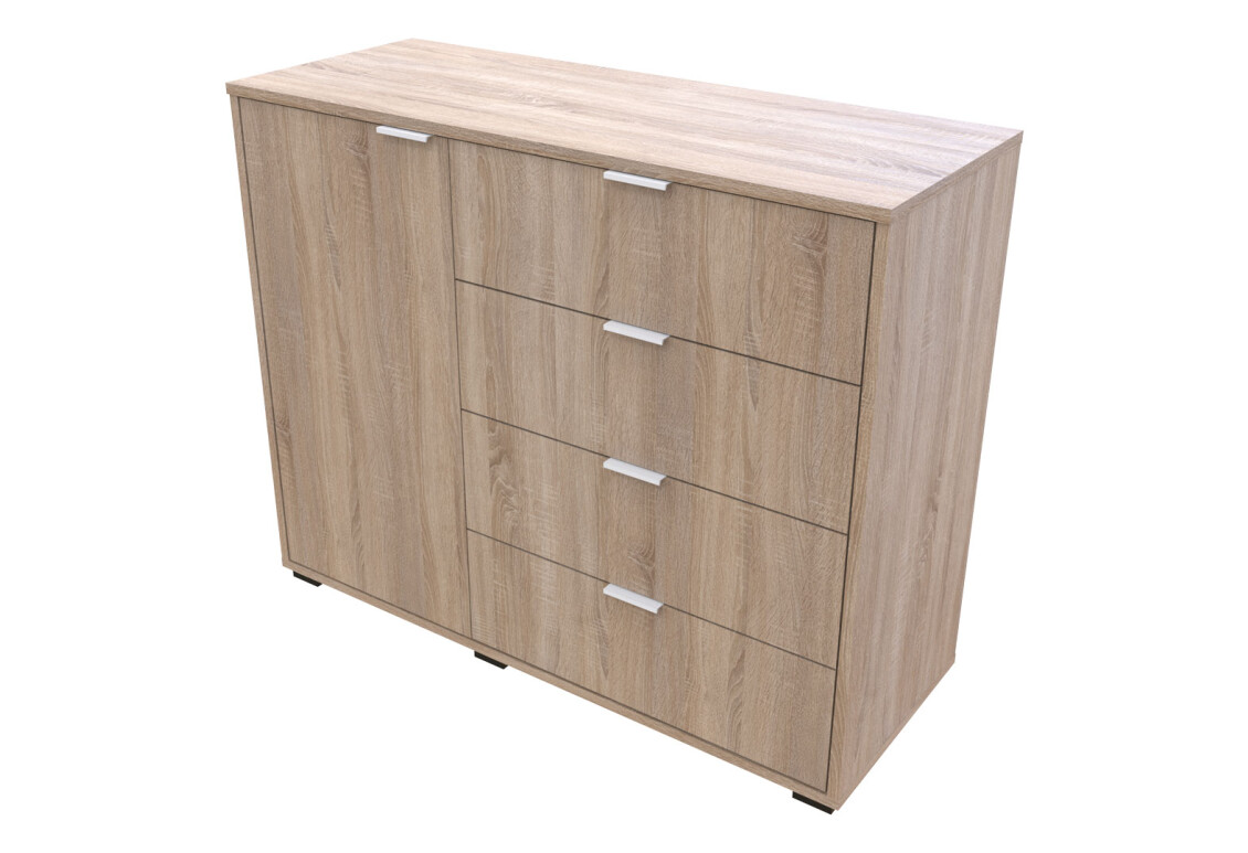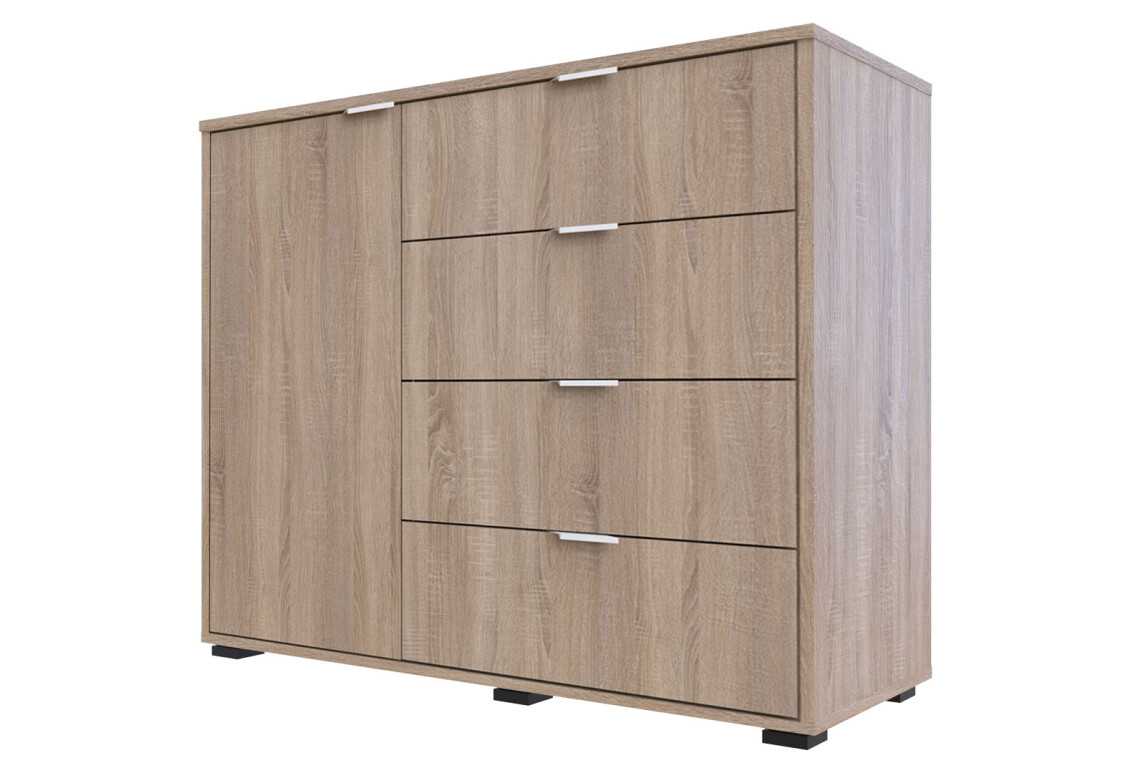Комод Doros GС1 — это идеальное решение для тех, кто ценит функциональность и стиль в интерьере. С шириной 100 см и высотой 81,2 см, он отлично впишется в любое пространство, будь то гостиная, спальня или прихожая. Этот комод выполнен в современном стиле и представлен в элегантном цвете дуб сонома, что придаёт ему универсальность и возможность сочетания с различными элементами декора. Комод оснащён четырьмя вместительными ящиками и одной дверкой, что обеспечивает удобное хранение ваших вещей и позволяет поддерживать порядок в комнате.