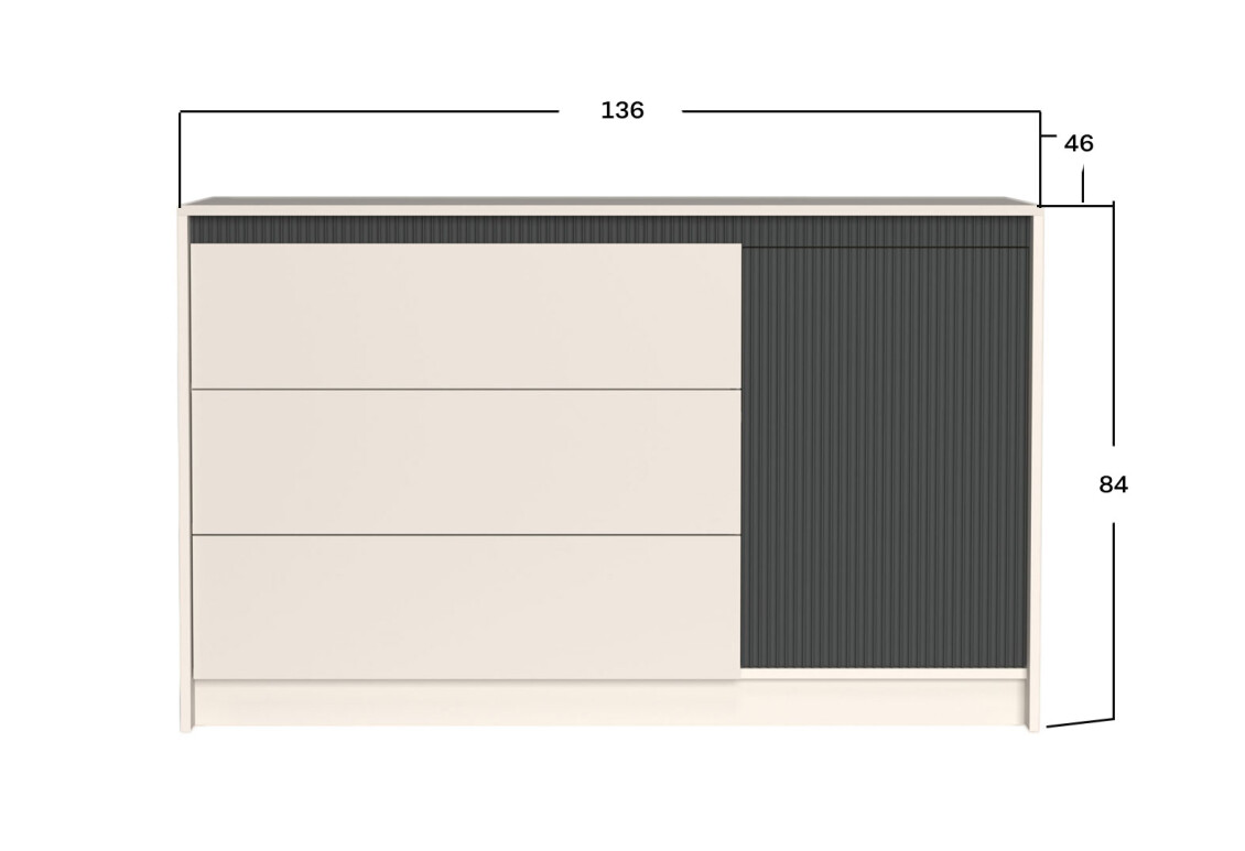 Комод Гербор Монако 1-дверный с 3 ящиками — это идеальное решение для тех, кто ценит сочетание функциональности и современного стиля. Этот комод, выполненный в изысканном цвете кашемир и элегантном сером софттач, станет не только практичным элементом интерьера, но и его стильным акцентом. Его размеры (ширина 136 см, высота 84 см, глубина 46 см) позволяют удобно разместить его даже в небольших помещениях, не занимая много места. Комод оснащен тремя вместительными ящиками и дверкой, что обеспечивает достаточно пространства для хранения различных вещей. Особенностью данной модели являются удобные ручки с механизмом push to open, которые делают использование комода еще более комфортным. Изготовленный из ламинированной ДСП, комод отличается прочностью и долговечностью, что гарантирует его надежность на долгие годы. Вы можете выбрать этот комод в двух цветовых вариантах: кашемир и кашемир / элегантный серый софттач.
