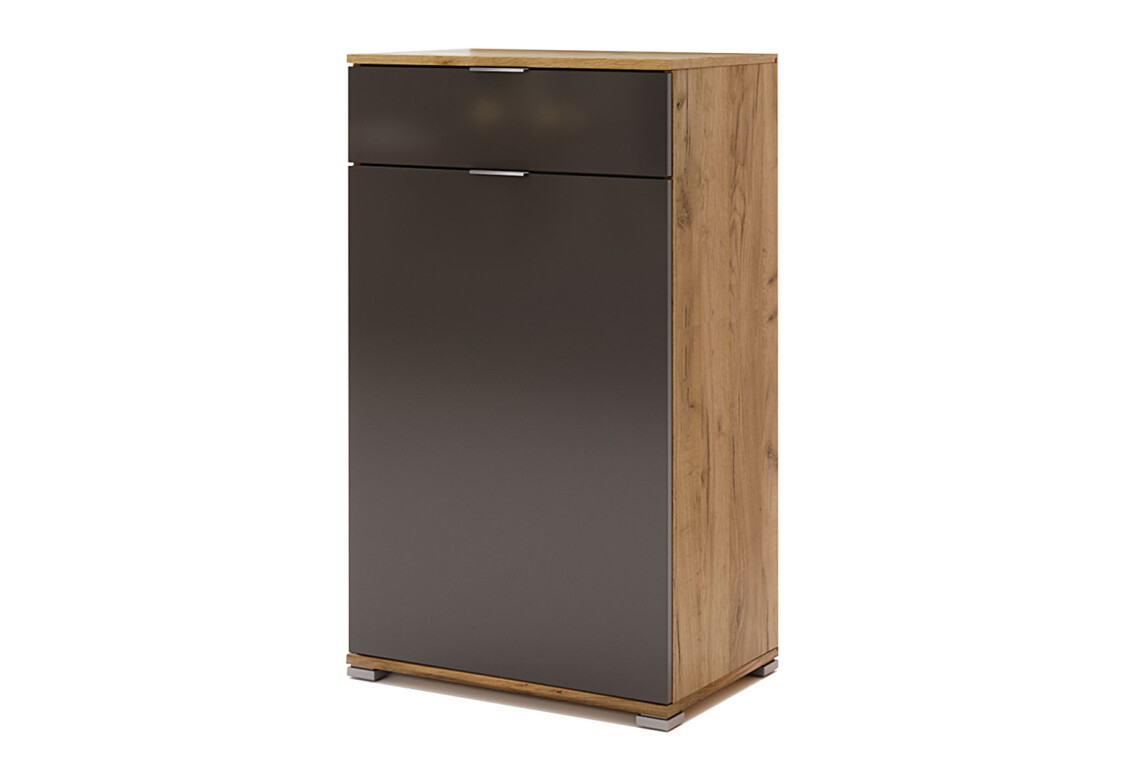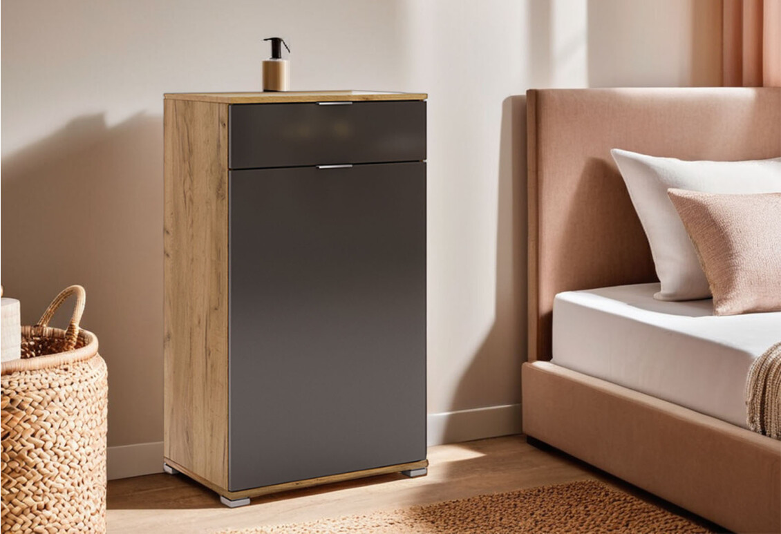 Комод MiroMark Луна 1-дверный с 1 ящиком – это идеальное решение для тех, кто ценит функциональность и стиль в интерьере. Его компактные размеры (ширина 60 см, высота 103 см, глубина 40 см) позволяют разместить комод даже в небольших помещениях, при этом он предоставляет достаточно пространства для хранения различных вещей. Изготовленный из ламинированной ДСП, этот комод отличается прочностью и долговечностью, что делает его надежным выбором для вашего дома. Металлические ручки и пластиковые ножки добавляют современный акцент, а стильный цвет «лава / дуб крафт» легко вписывается в любой интерьер, создавая атмосферу уюта и гармонии.