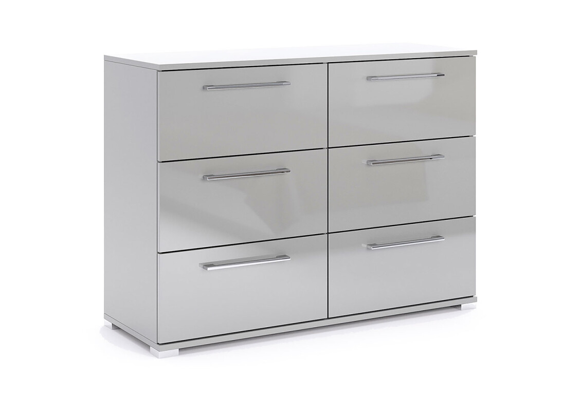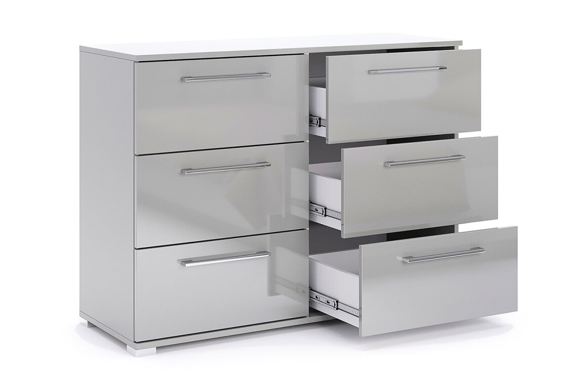 Комод оснащен шестью вместительными ящиками, которые обеспечивают удобное хранение вещей. Телескопические направляющие полного выдвижения гарантируют легкость и плавность открытия, а металлические ручки подчеркивают современный дизайн. Пластиковые ножки придают устойчивость и защищают поверхность пола от повреждений. Этот комод станет не только практичным, но и стильным акцентом в вашей спальне или гостиной.