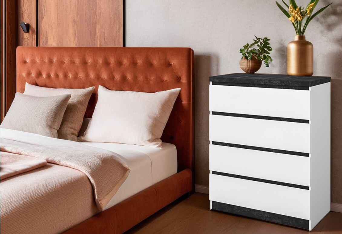 Комод Svit Mebliv Мия с 4 ящиками – это идеальное решение для тех, кто ценит функциональность и надежность в интерьере. С его помощью вы сможете эффективно организовать пространство, сохраняя порядок в своих вещах. Этот комод выполнен в современном стиле, что делает его универсальным элементом для любого интерьера. Его элегантный белый цвет в сочетании с темным бетоном придаёт изделию стильный и актуальный вид, который гармонично впишется как в спальню, так и в гостиную. Благодаря четырем просторным ящикам, вы сможете разместить все необходимые вещи, не беспокоясь о нехватке места. Комод изготовлен из качественной плиты ДСП, что обеспечивает ему долговечность и устойчивость к износу.