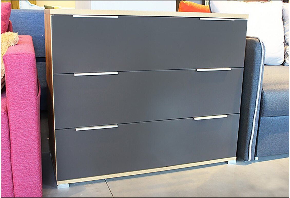 Комод MiroMark Рамона с 3 ящиками – это идеальное решение для тех, кто ценит стиль, функциональность и надежность в своей мебели. С шириной 101 см, высотой 80.1 см и глубиной 46.2 см, этот комод прекрасно впишется в любое пространство, предоставляя достаточно места для хранения ваших вещей. Выполненный в современном стиле, он сочетает в себе элегантность и практичность, что делает его отличным выбором для спальни или гостиной. Гладкая глянцевая поверхность фасада из ДСП и надежный корпус из ламинированной ДСП обеспечивают долговечность и легкость в уходе. Телескопические направляющие полного выдвижения гарантируют плавное открытие ящиков, а металлические ручки добавляют изысканности и удобства в использовании.