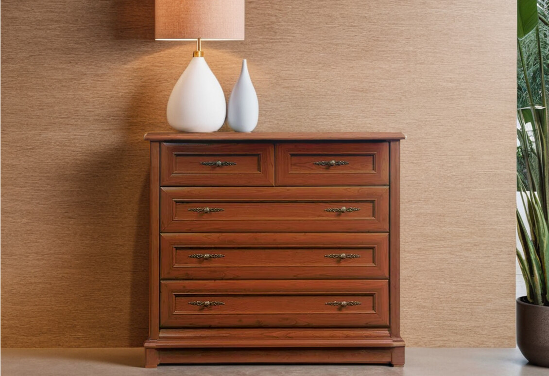 Комод Гербор Соната с 5 ящиками – это идеальное решение для тех, кто ценит функциональность и надежность в мебели. С шириной 101 см, высотой 91 см и глубиной 45 см, этот комод отлично впишется в любое пространство, обеспечивая при этом достаточное место для хранения ваших вещей. Изготовленный из качественной ламинированной ДСП, он отличается прочностью и долговечностью. Фасад комода выполнен из ДСП с накладками МДФ, что придает ему стильный и современный вид. Металлические ручки и роликовые направляющие обеспечивают легкость и комфорт в использовании, а классический цвет каштан добавляет элегантности вашему интерьеру.
