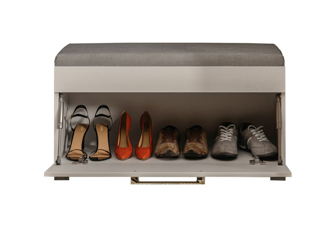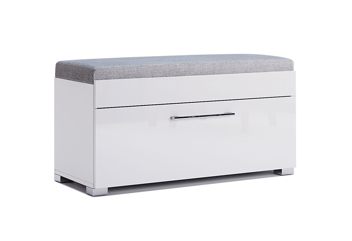 Характеристики товара Тумба для обуви Аманда MiroMark с одной дверкой и сиденьем 90 см, глянец белый