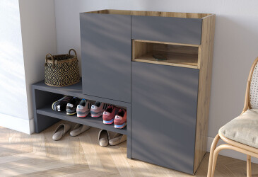 Тумба для обуви Moreli RS-4 с дверцами, полками и ящиком 85 см антрацит / дуб аппалачи