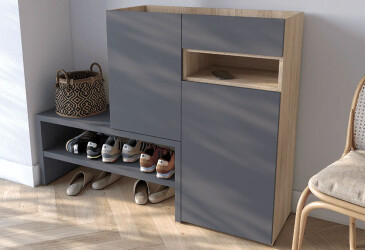 Тумба для обуви Moreli RS-4 с дверцами, полками и ящиком 85 см антрацит / дуб сонома