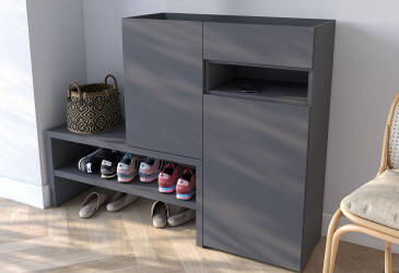 Тумба для обуви Moreli RS-4 с дверцами, полками и ящиком 85 см антрацит