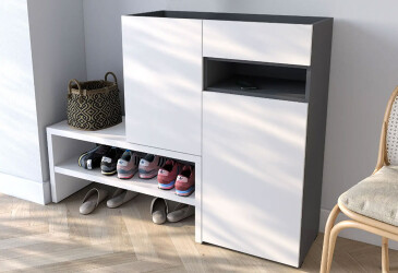 Тумба для обуви Moreli RS-4 с дверцами, полками и ящиком 85 см антрацит / белый