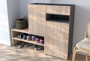 Тумба для обуви Moreli RS-4 с дверцами, полками и ящиком 85 см дуб сонома / антрацит