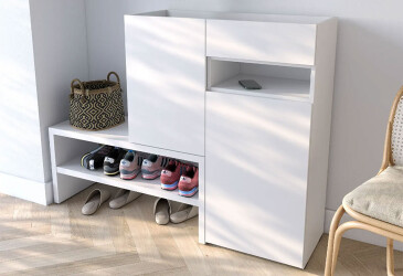 Тумба для обуви Moreli RS-4 с дверцами, полками и ящиком 85 см белый