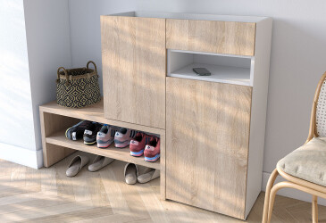 Тумба для обуви Moreli RS-4 с дверцами, полками и ящиком 85 см дуб сонома / белый