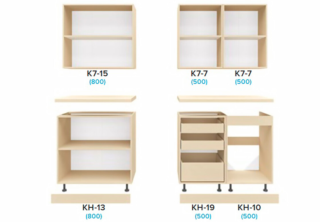 - Виды кухонных комплектов: прямые, идеально подходящие для компактных кухонь