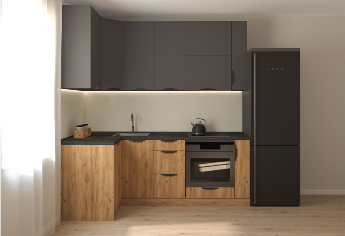 Кухня угловая MiroMark Лео / Leo является частью модульной системы, которая включает в себя 148 различных товаров. Эта система позволяет вам легко комбинировать и подбирать необходимые элементы, такие как кухонные гарнитуры, нижние и верхние кухонные тумбы, пеналы и кухонные фасады. Благодаря этому вы сможете создать уникальный и функциональный интерьер, отвечающий всем вашим требованиям. Модульная система обеспечивает гибкость в выборе и дает возможность адаптировать кухню под любые размеры и стиль вашего помещения.