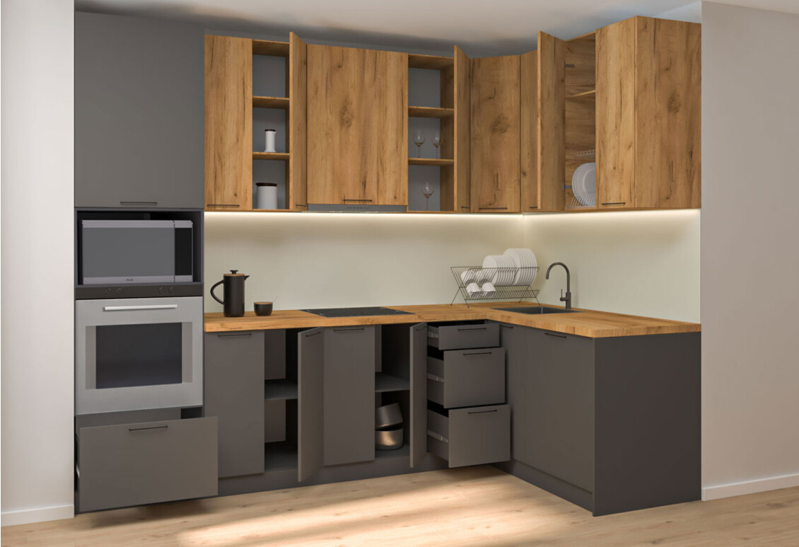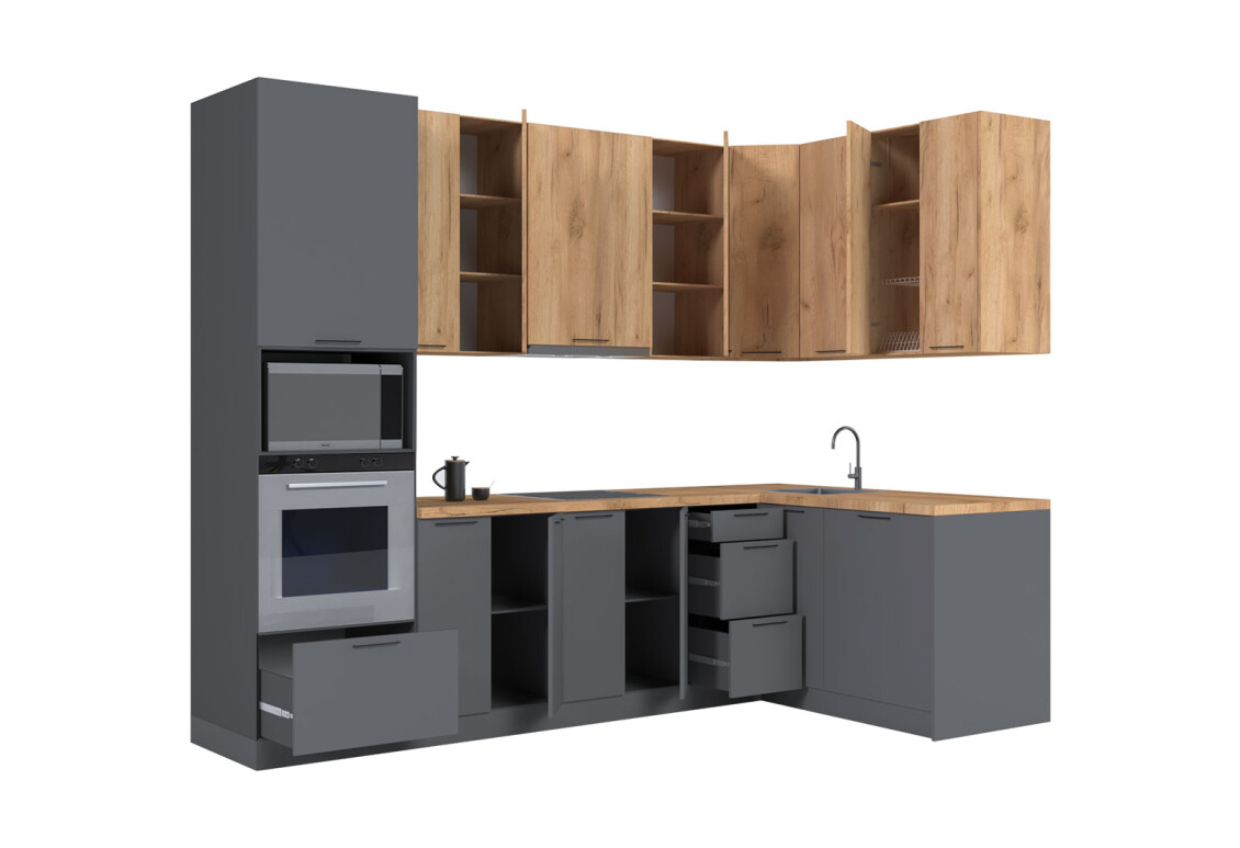 Характеристики товара Кухня угловая MiroMark Лео / Leo 2.8х1.62 м, дуб крафт золотой / графит