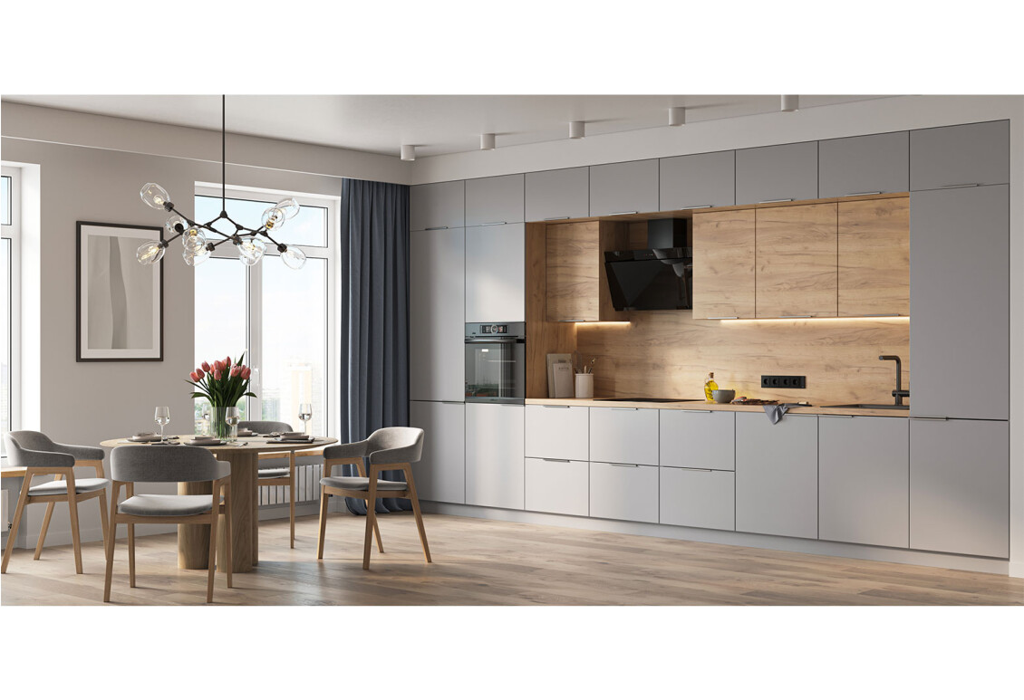 Кухня Мери / Mary 4.8 от производителя MiroMark – это идеальное решение для тех, кто ценит современный стиль и практичность в интерьере. Этот кухонный гарнитур, выполненный из качественных материалов, таких как ДСП и крашеная МДФ, сочетает в себе функциональность и привлекательный внешний вид. Ширина 480 см позволяет удобно разместить все необходимые элементы, обеспечивая комфорт при приготовлении пищи и общении с близкими. Кухня представлена в различных цветах, что позволяет легко вписать её в любой интерьер. Доступные модификации включают белый, антрацит и дуб крафт для корпуса, а также множество вариантов для фасадов, включая глянец и полуматовые текстуры. Такой выбор гарантирует, что каждый сможет подобрать идеальный вариант для своего дома.