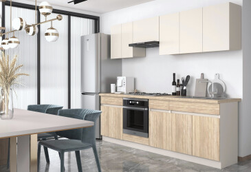 Кухня МироМарк Лео является частью модульной системы, которая включает в себя 146 товаров, предлагая широкий выбор кухонных гарнитуров, нижних и верхних тумб, пеналов и фасадов. Это позволяет вам создать уникальное кухонное пространство, адаптированное под ваши потребности. Вы можете легко комбинировать различные элементы, чтобы достичь идеального сочетания функциональности и стиля. Каждый элемент модульной системы разработан с учетом современных тенденций и требований, что делает вашу кухню не только красивой, но и максимально удобной.