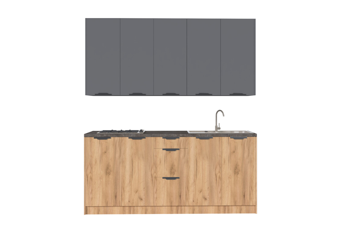 Характеристики товара Кухня МироМарк Лео / Leo 200 см, графит / дуб крафт