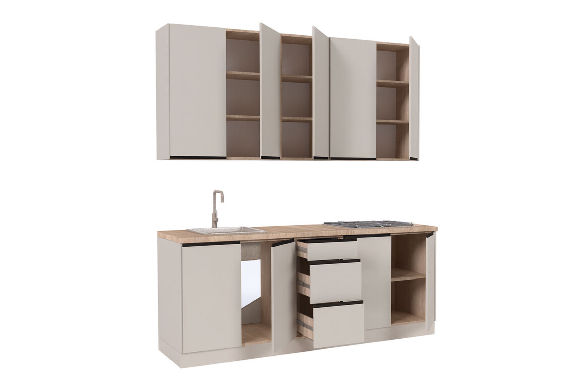 Кухня Svit Mebliv Тина 200 см в цвете сатин – это идеальное решение для вашего дома, которое сочетает в себе современный стиль, функциональность и доступную цену. Изготовленная из качественной ДСП, эта кухня станет надежным помощником в вашем кулинарном процессе. Прямой кухонный гарнитур длиной 200 см идеально впишется в любое пространство, обеспечивая максимальную эффективность использования площади. Благодаря разнообразным модификациям, вы сможете выбрать цвет, который лучше всего подойдет вашему интерьеру, включая стильные варианты дымчатого зеленого и дуба королевского. Мы предлагаем вам выгодные условия покупки, так как наша оптовая база мебели «Склад Мебели» обеспечивает доступ к качественной мебели по самым привлекательным ценам.