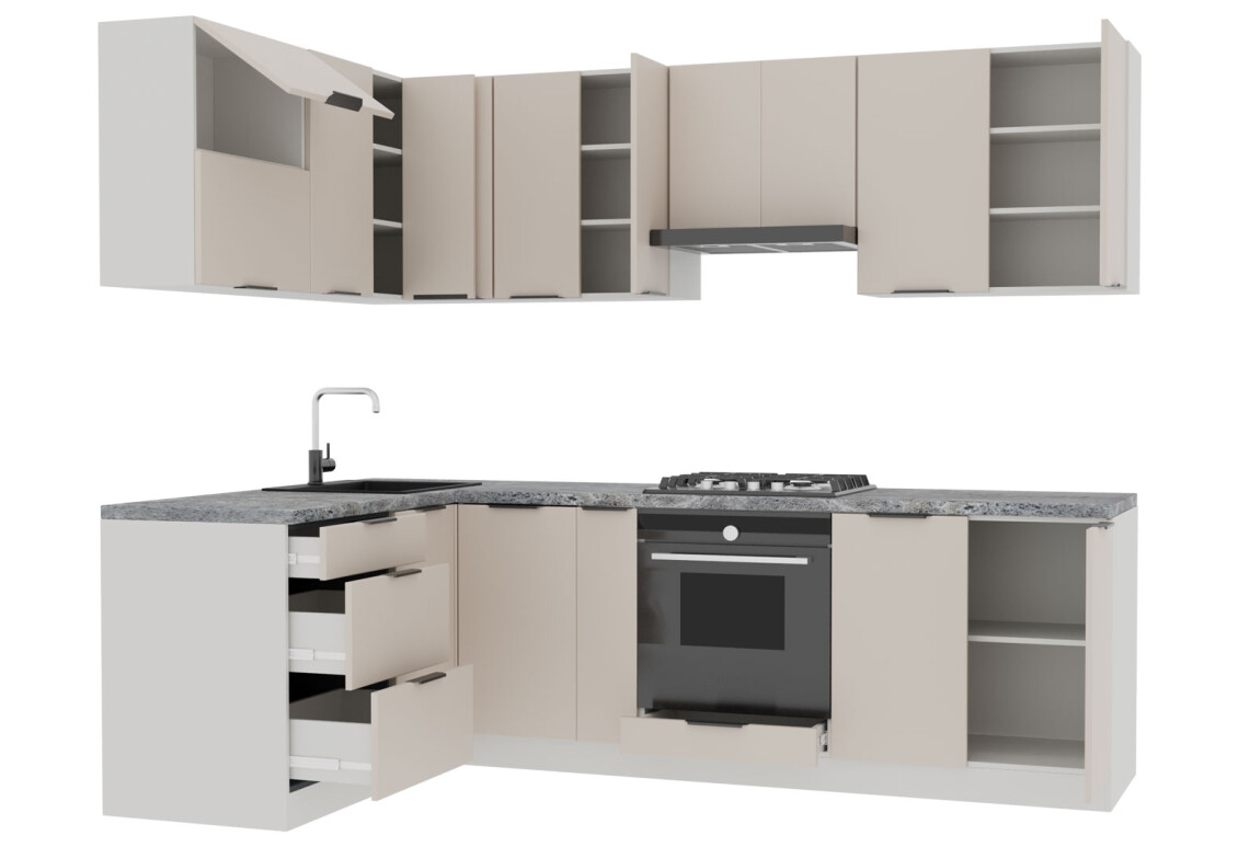 Кухня Вип-Мастер Флэт Люкс 1.6х2.6 является частью модульной системы Модульная кухня Флэт Люкс, которая включает в себя 216 элементов различных категорий. Вы можете подобрать идеальные кухонные гарнитуры, нижние и верхние кухонные тумбы, пеналы, а также кухонные фасады, что позволяет создать уникальное и функциональное пространство, полностью соответствующее вашим потребностям и предпочтениям. Выбирая модульную систему, вы получаете гибкость в дизайне и возможность легко адаптировать кухню под любые изменения в интерьере.