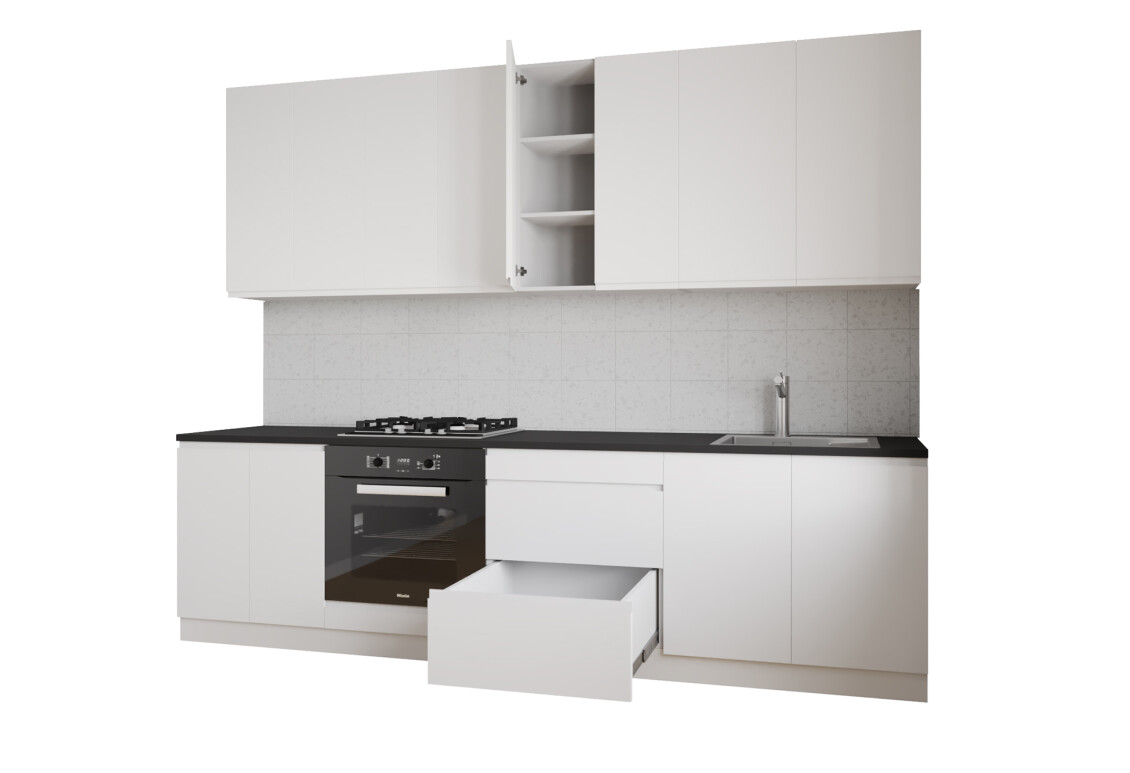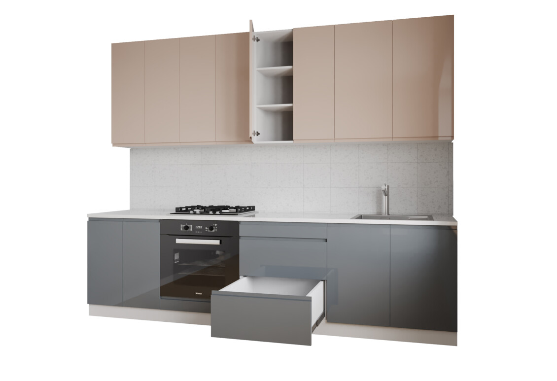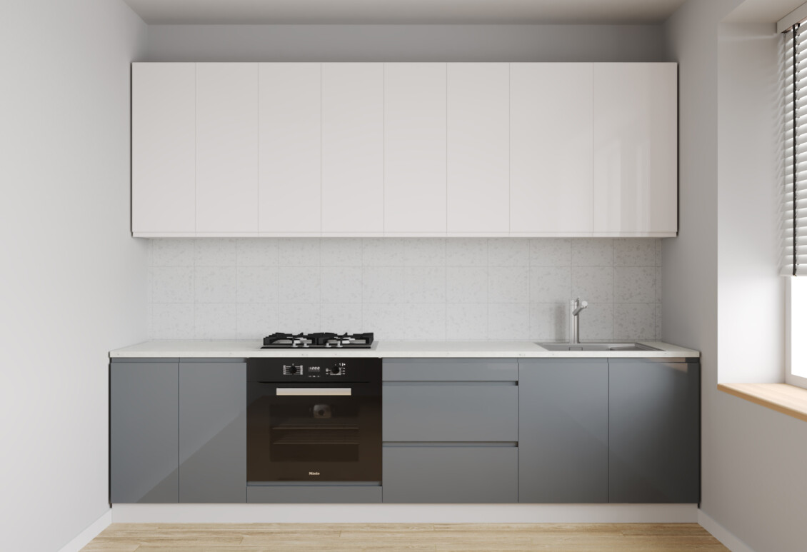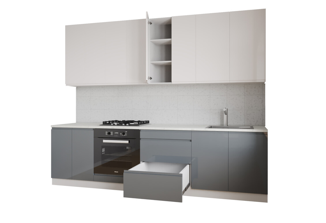 Характеристики товара Кухня Вип Мастер Интерно Люкс / Interno Luxe 260 см, молочный глянец / серый глянец