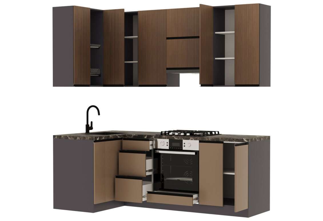 Характеристики товара Кухня VIP-master Лори Люкс верх + Прайм Люкс низ 2.2х1.2 м, орех браун V / коричневый