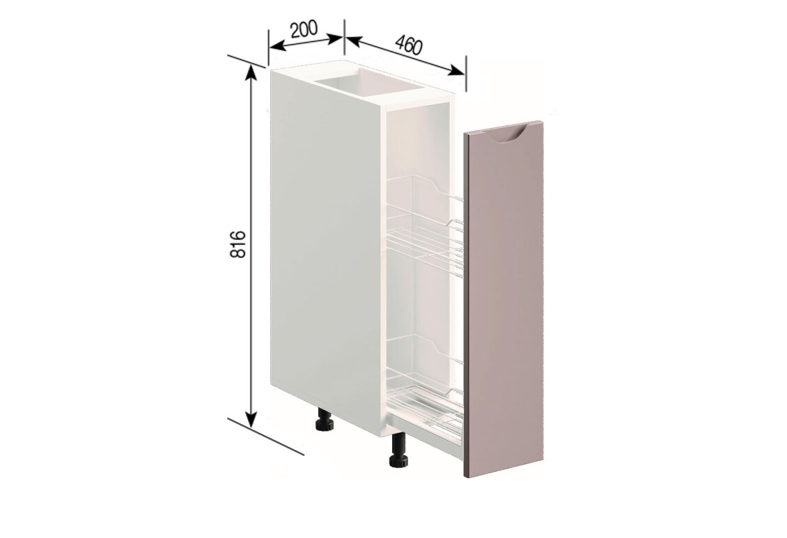 Н 20 Карго Зарина от производителя Svit Mebliv – это идеальное решение для вашей кухни, которое сочетает в себе функциональность, надежность и стиль. Этот нижний кухонный тумбочек, шириной всего 20 см, высотой 81.6 см и глубиной 46 см, станет отличным дополнением для небольших кухонных пространств, обеспечивая удобное хранение посуды и кухонных принадлежностей. Изготовленный из качественной плиты, он гарантирует долговечность и устойчивость к внешним воздействиям. Эстетичный фасад из крашеного МДФ добавляет нотку элегантности, а разнообразие доступных модификаций позволяет вам выбрать идеальный цвет, который гармонично впишется в интерьер вашей кухни.
