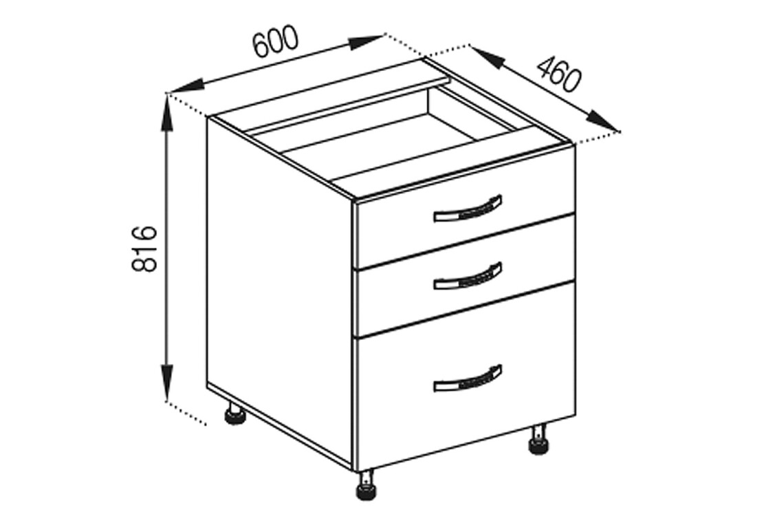 - Корпус Н 60 3Ш (2+1) Favorit Svit Mebliv, 1 шт – 60.00 см x 81.60 см x 46.00 см