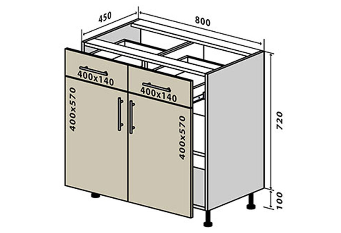 Тумба Н27 Тумба 2Ш2Д 80 Прайм / Prime Вип-Мастер станет отличным решением для вашей кухни, обеспечивая удобное хранение и стильный внешний вид. Изготовленная из высококачественных материалов, эта тумба сочетает в себе надежность и функциональность. Корпус выполнен из ламинированной ДСП, а фасад – из шпонированной ДСП толщиной 19 мм, что гарантирует долговечность и устойчивость к повреждениям. Благодаря продуманной конструкции и современному дизайну, тумба идеально впишется в любой интерьер, создавая уютную атмосферу.