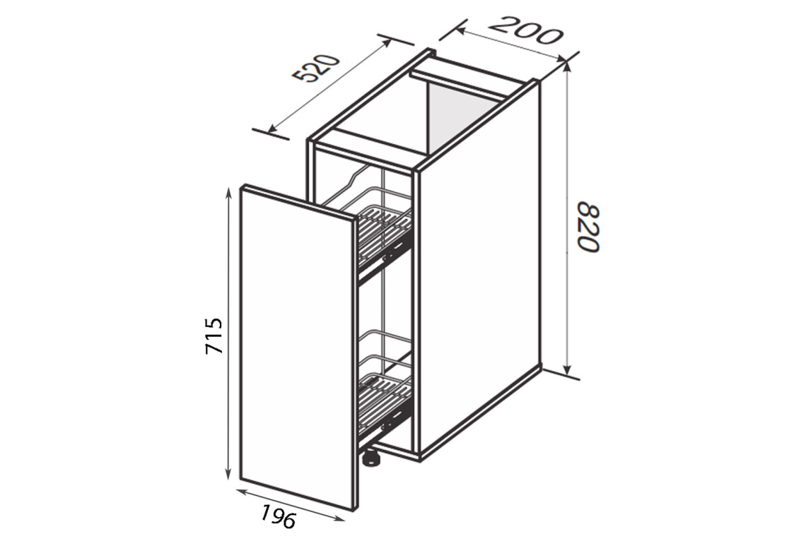 Низ 20НК/820 карго Миллениум от производителя MiroMark — это идеальное решение для вашей кухни, которое сочетает в себе современный стиль и практичность. Этот нижний кухонный тумба выполнена из качественных материалов, что гарантирует долговечность и надежность в эксплуатации. Корпус из ДСП и фасад из крашеной МДФ обеспечивают не только прочность, но и легкость в уходе, что особенно важно для кухонной мебели. Удобные размеры (ширина 20 см, высота 82 см, глубина 52 см) позволяют разместить тумбу даже в ограниченном пространстве, что делает её отличным выбором для малогабаритных кухонь. Тумба доступна в нескольких модификациях, включая белый, антрацит и дуб крафт для корпуса, а фасад выполнен в белом глянце, что придаёт мебели элегантный и современный вид.