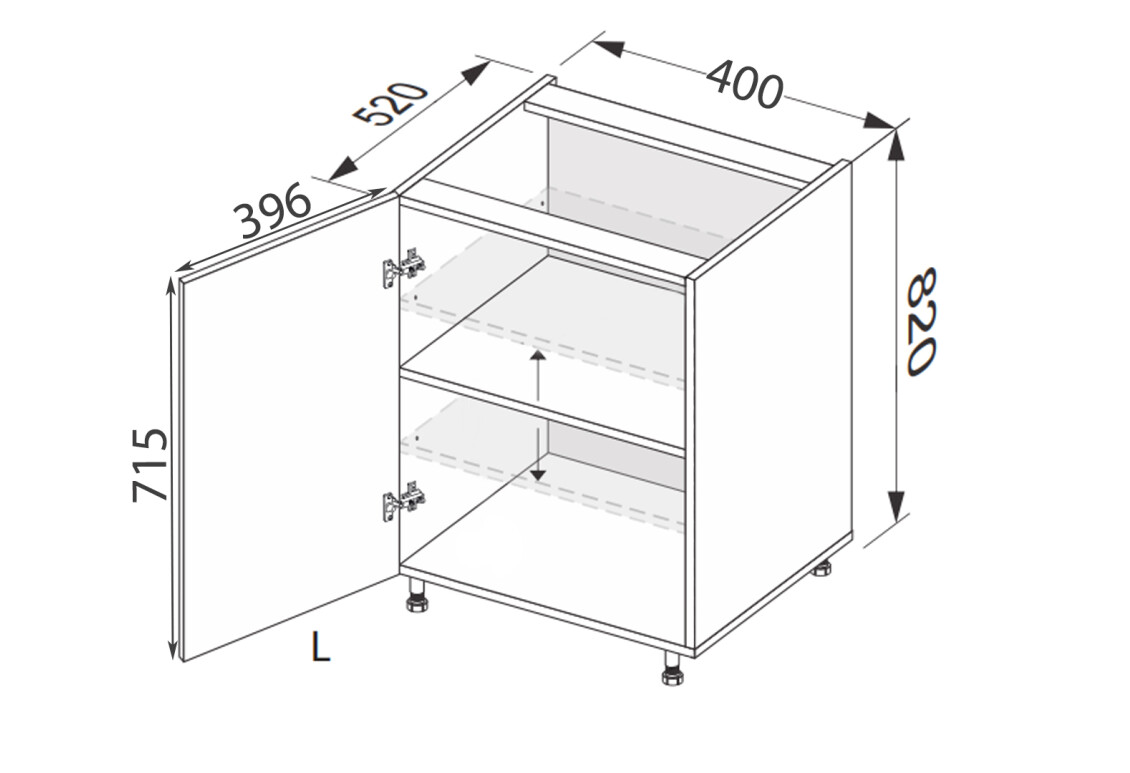 Низ 40Н/820 1дв ліва Миллениум / Millenium від виробника MiroMark — це ідеальне рішення для вашої кухні, поєднуюче в собі сучасний стиль, функціональність та високу якість. Цей нижній кухонний тумба має оптимальні розміри: ширина 40 см, висота 82 см та глибина 52 см, що дозволяє ефективно використовувати простір навіть у невеликих кухнях. Виготовлений з надійної ДСП, корпус тумби забезпечує тривалу експлуатацію, а фасад з крашеного МДФ додає елегантності та сучасності. Ви можете вибрати з кількох доступних модифікацій кольору: корпус може бути білого, антрацитового або дуба крафт, а фасад виконаний у стильному білому глянці, що дозволяє легко підібрати варіант, який найкраще впишеться в інтер'єр вашої кухні.