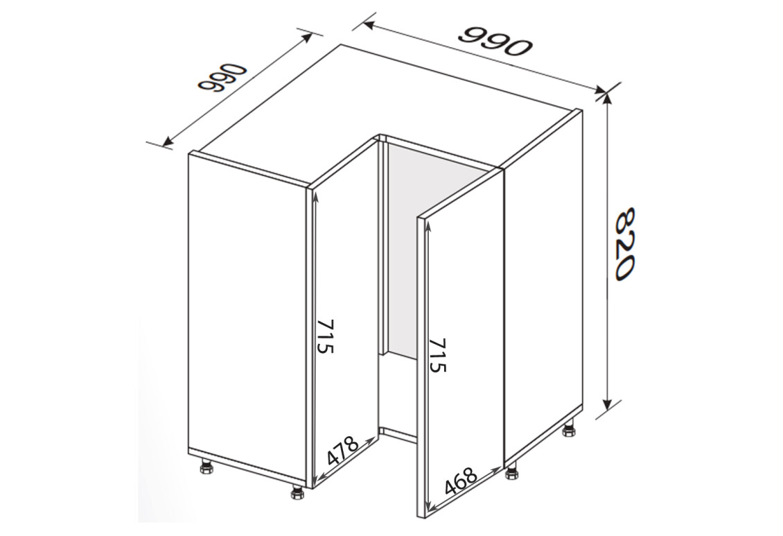 - Корпус Угол Н 90° 2дв 1050х1050 820мм МироМарк, 1 шт – 99.00 см x 82.00 см x 99.00 см