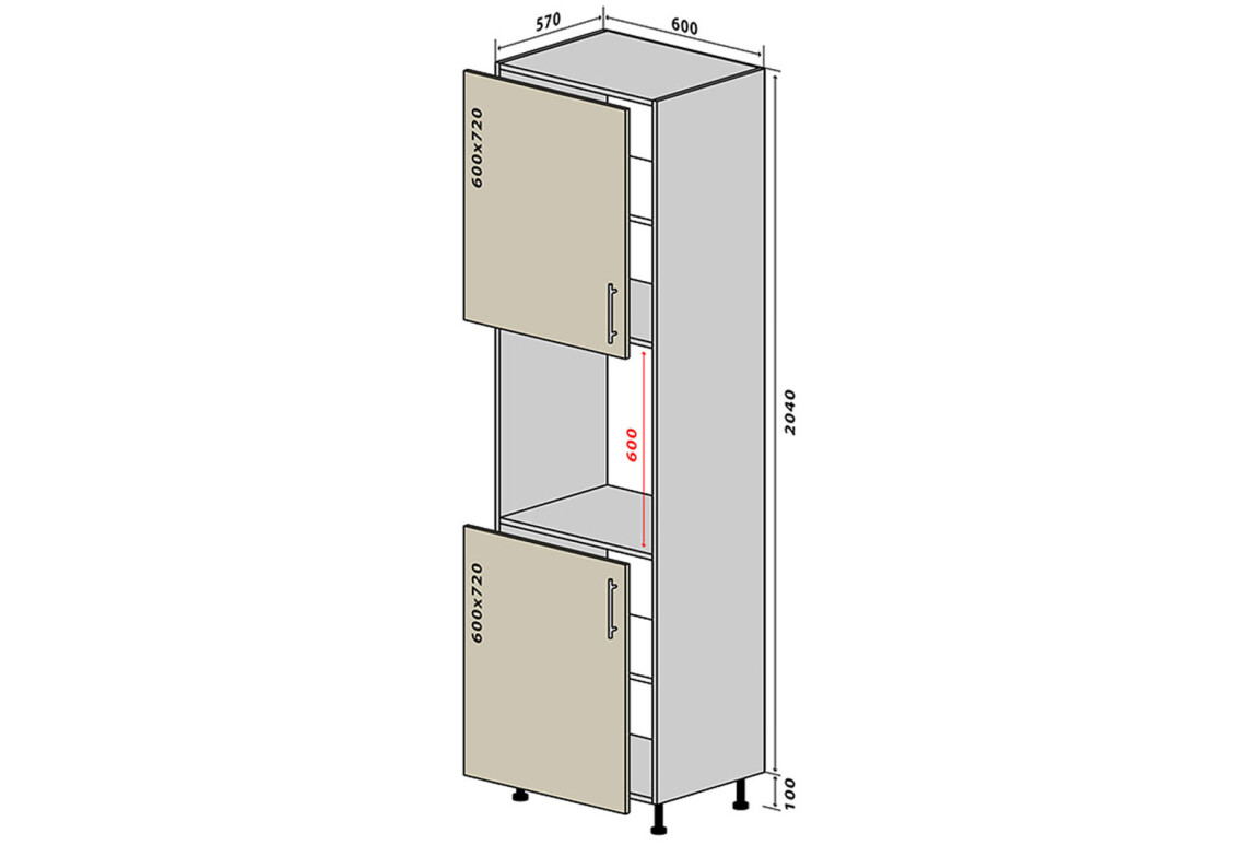 - Размер: ширина - 60.00 см, высота - 214.00 см, глубина - 57.00 см