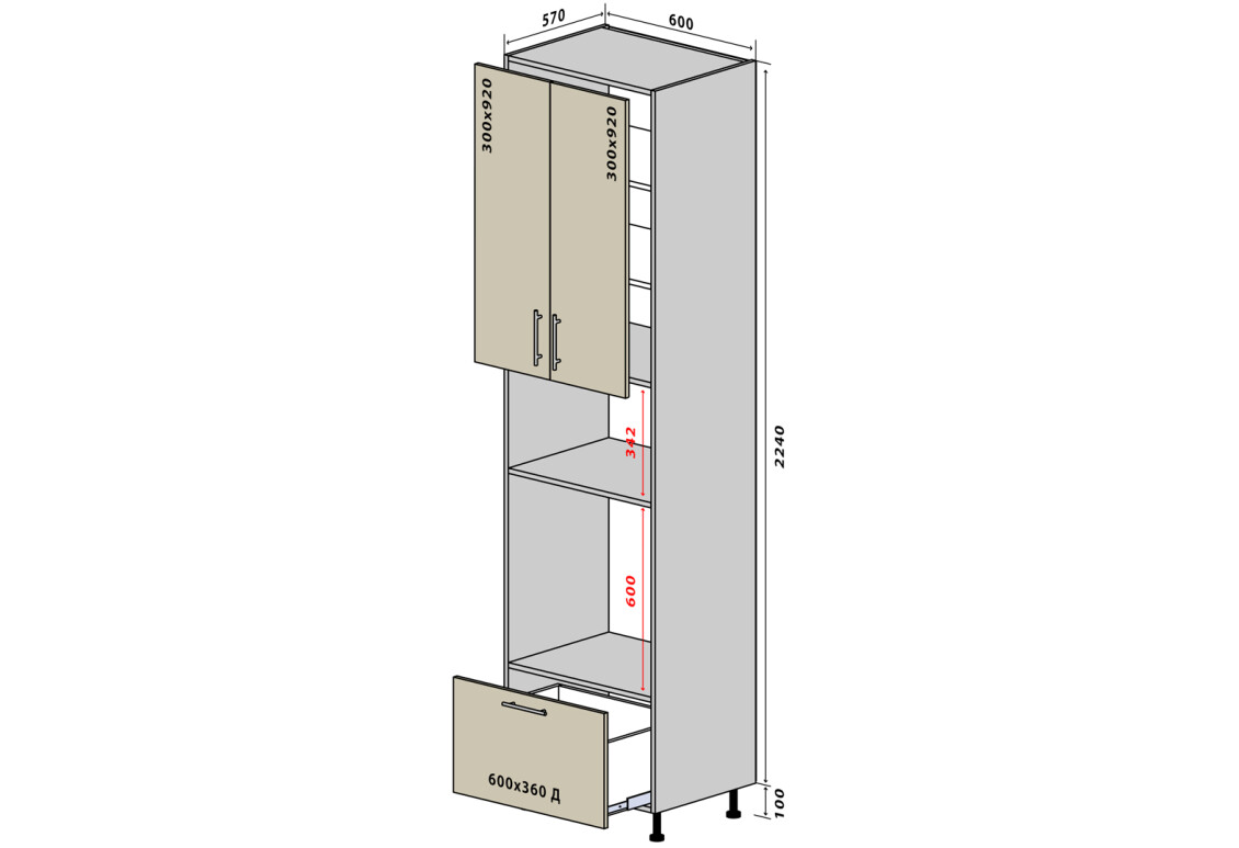 Пенал Н41 2Д1Ш 234 Аморе Классик Люкс от производителя VIP-master — это идеальное решение для тех, кто ценит практичность и стиль в кухонной мебели. Высота 234 см и ширина 60 см позволяют эффективно использовать пространство, а глубина 57 см обеспечивает достаточное место для хранения кухонных принадлежностей. Этот пенал станет не только функциональным элементом вашей кухни, но и стильным акцентом, благодаря разнообразию доступных модификаций, среди которых вы сможете выбрать цвет корпуса: венге, дуб молочный, серый, слоновая кость, антрацит, кашемир, черный, дуб аппалачи, бетон, сосна натти, бетон темный, нимфея альба и белый. Фасады также представлены в различных цветах: бежевый мат, белый мат, слоновая кость мат, фисташковый мат и меланжевый мат.