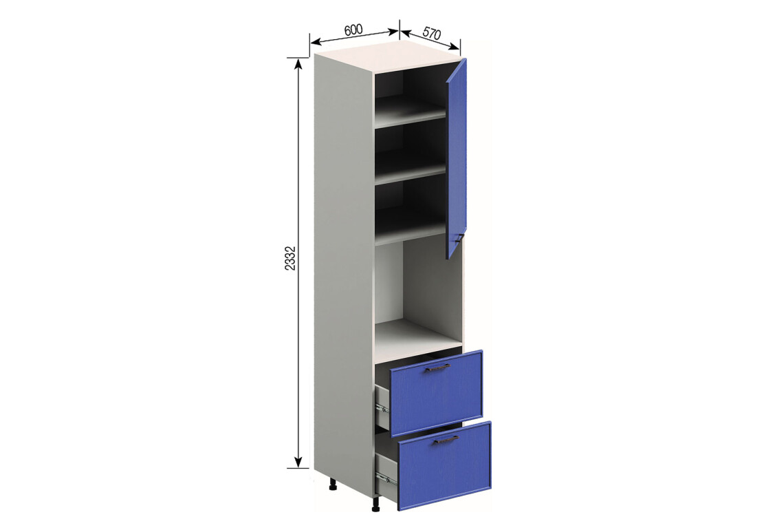 Пенал П 60 ДШ LUX (h-920) Ариэль от производителя Svit Mebliv — это идеальное решение для организации пространства вашей кухни. Он сочетает в себе функциональность и стиль, что делает его незаменимым элементом для любого интерьера. Этот пенал выполнен из качественных материалов, что гарантирует его долговечность и надежность. Модель отличается продуманными размерами: ширина 60 см, высота 233.2 см и глубина 57 см, что позволяет эффективно использовать пространство, не загромождая его. Пенал доступен в различных модификациях, что позволяет выбрать именно тот цвет, который идеально впишется в ваш интерьер. Вы можете выбрать цвет корпуса: дуб сонома, графит, дуб крафт золотой, пепельный или белый, а также цвет фасада: голубая лагуна, белый супермат, дуб закарпатский, дуб айс, венге модена, венге палермо и венге парма.