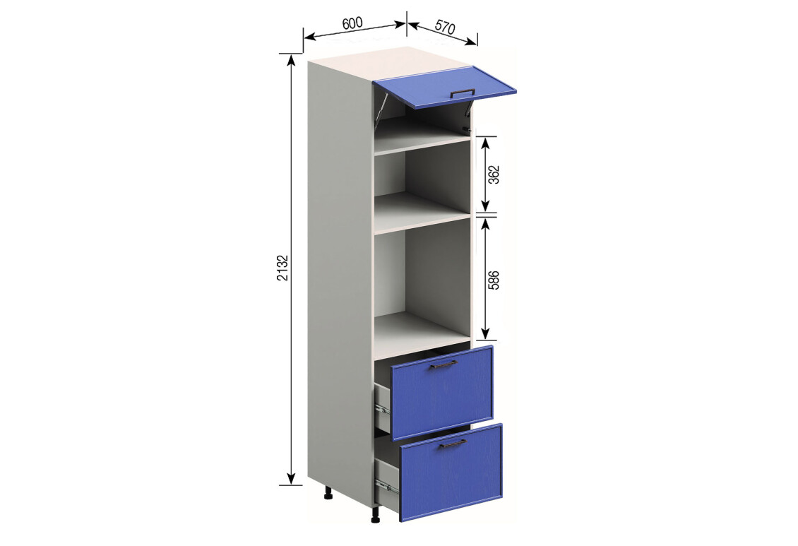 Пенал кухонный П 60 ДШ п/микровол. LUX Ариэль от производителя Svit Mebliv – это идеальное решение для организации пространства вашей кухни. Он сочетает в себе практичность и стиль, что делает его незаменимым элементом в любом интерьере. Этот пенал выполнен из качественных материалов, таких как ДСП для корпуса и МДФ для фасада, что обеспечивает долговечность и надежность. Размеры пенала (ширина 60 см, высота 213.2 см, глубина 57 см) позволяют эффективно использовать вертикальное пространство, что особенно важно для небольших кухонь. Благодаря разнообразию доступных модификаций, вы сможете выбрать идеальный цвет, который гармонично впишется в ваш интерьер. Цвета корпуса включают дуб сонома, графит, дуб крафт золотой, пепельный и белый, а фасады представлены в голубой лагуне, белом супермате, дубе закарпатском, дубе айс, венге модена, венге палермо и венге парма.