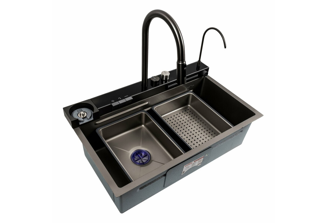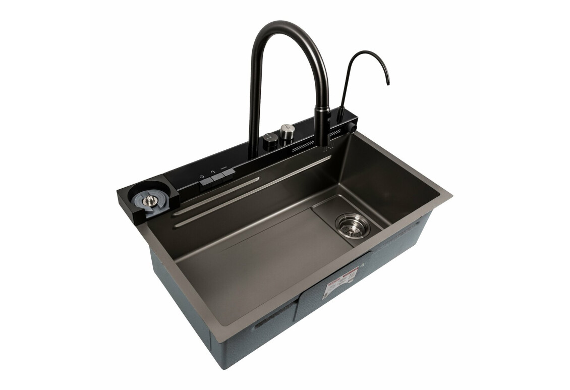 Кухонна мийка 75*46D PVD сіра Platinum Handmade "ВОДОСПАД" від бренду Platinum – це ідеальне рішення для вашої кухні, яке поєднує в собі сучасний дизайн, високу функціональність та надійність. Ця мийка виготовлена з нержавіючої сталі SUS 201, що забезпечує їй тривалий термін служби та стійкість до корозії. Матова фактура поверхні не лише додає елегантності, але й робить догляд за мийкою простим і зручним. Прямокутна форма мийки дозволяє оптимально використовувати простір на кухні, а розташування чаші справа забезпечує зручність при митті посуду та підготовці їжі.