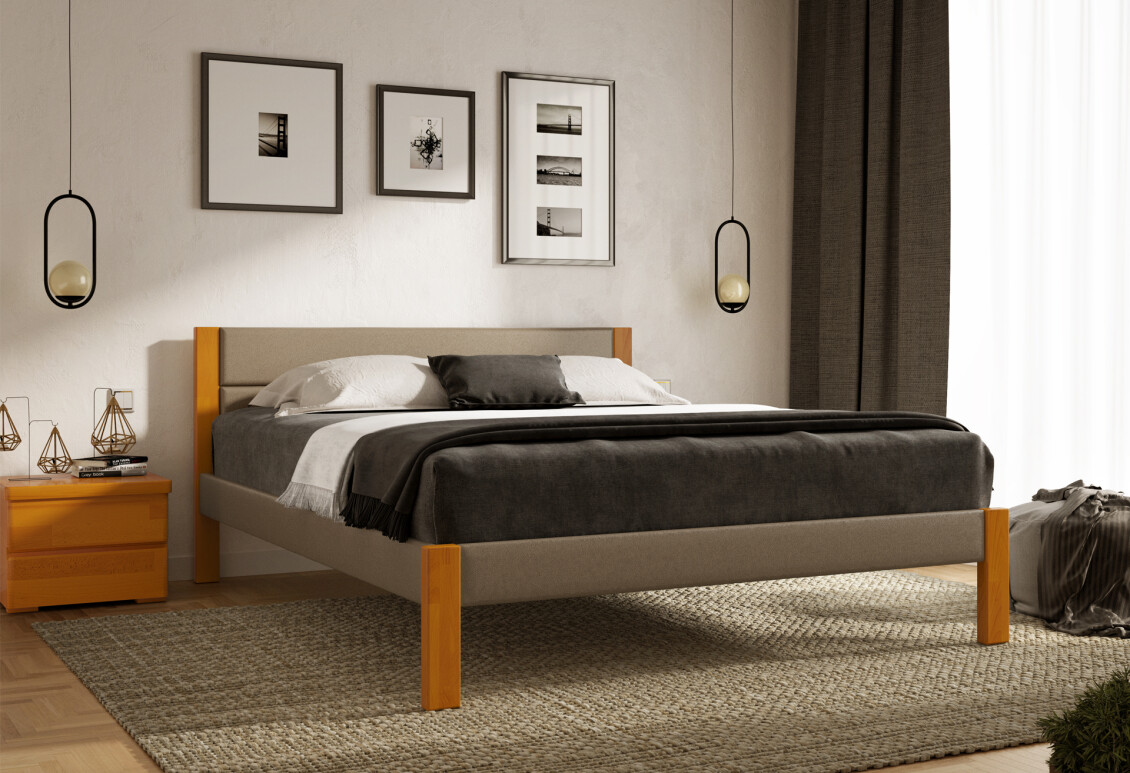 - Тип двухспальной кровати: деревянная