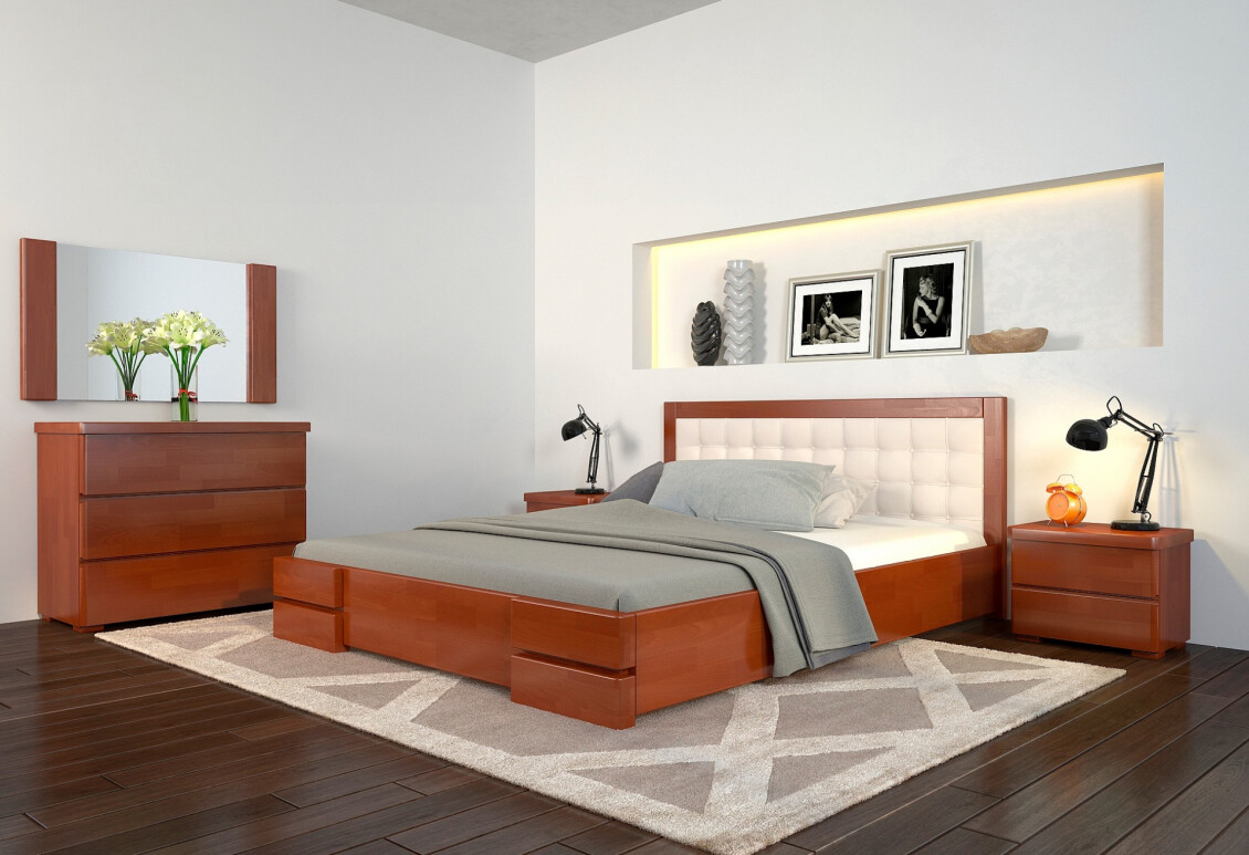 • Тип двухспальной кровати: подъемный механизм, деревянная