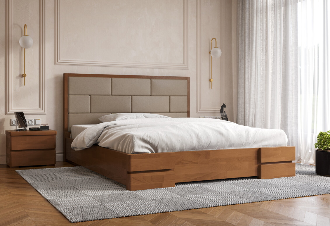 - Обивка: изголовье, что добавляет дополнительный комфорт