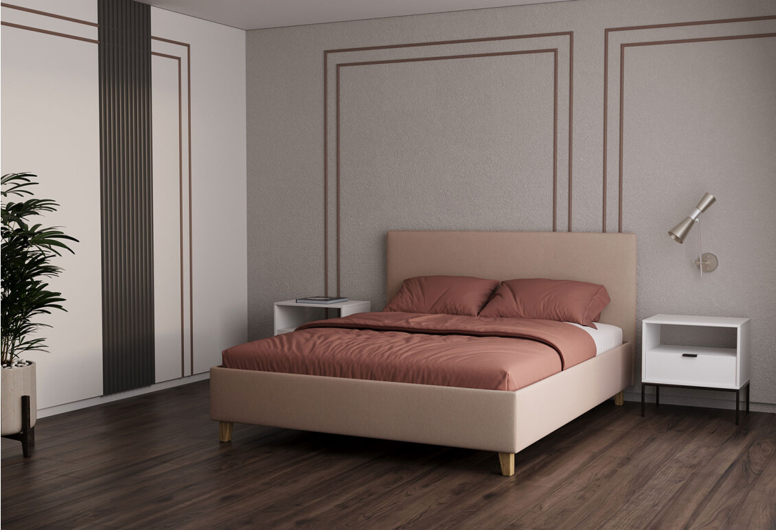 Кровать представлена в нескольких модификациях, что дает возможность выбрать наиболее подходящий вариант для вашего интерьера. Вы можете выбрать обивку из ткани Siena 1002 Powder, Делано 704 или Siena 1005 Hazelnut, что позволяет легко адаптировать кровать под ваши предпочтения и цветовую гамму комнаты.