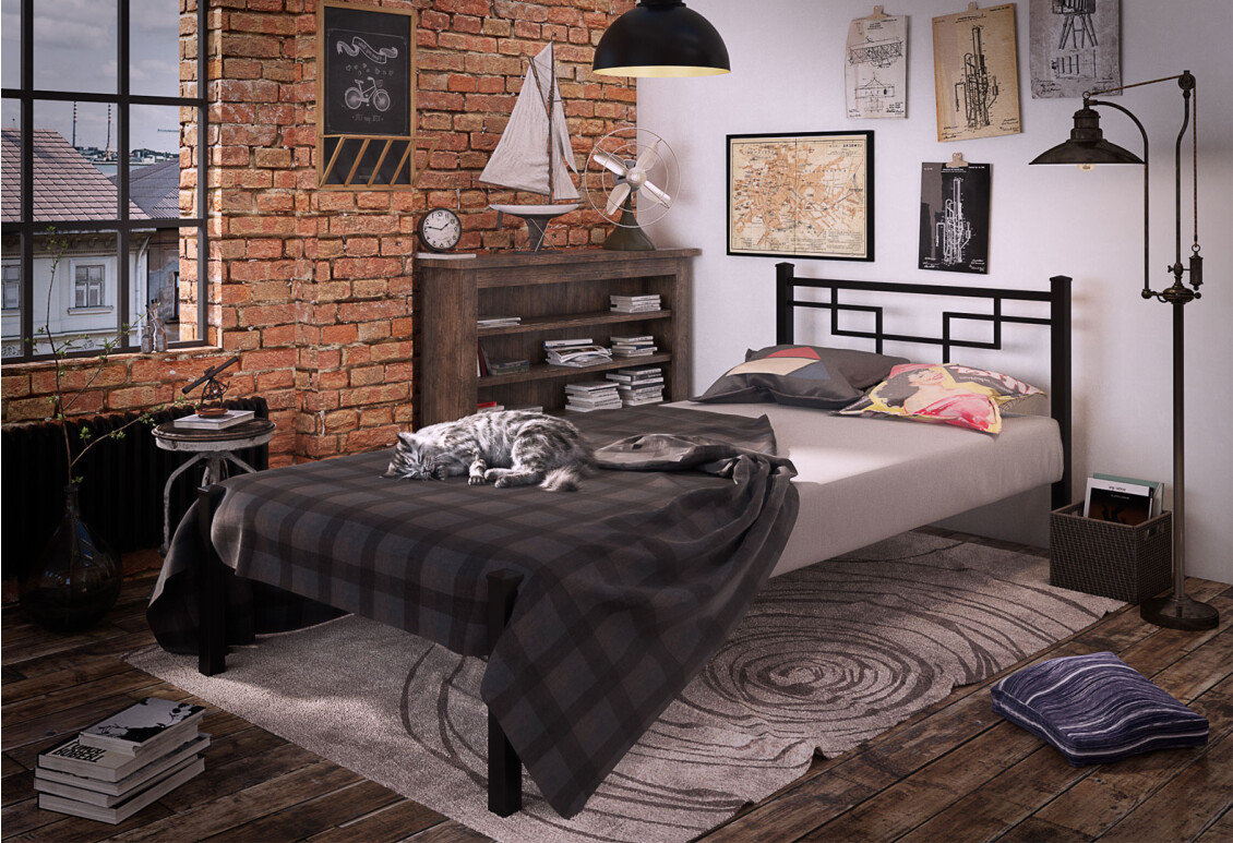 - Стиль: лофт, что делает кровать стильным элементом интерьера