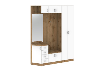 Прихожая Svit Mebliv Амбре является частью модульной системы, которая включает 12 элементов. Эта система позволяет вам подбирать мебель различных категорий, таких как комоды, тумбы, вешалки для одежды, обычные шкафы, пеналы и зеркала. Благодаря модульному подходу, вы можете создать уникальное пространство, которое идеально подойдет именно вам. Удобство выбора и возможность комбинирования элементов делают эту систему особенно привлекательной для покупателей, стремящихся к функциональности и стилю в одном решении.