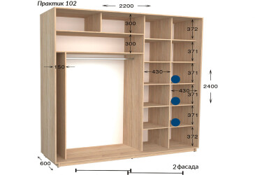 Шкаф-купе Garant Практик 101/2 2-дверный 220 см