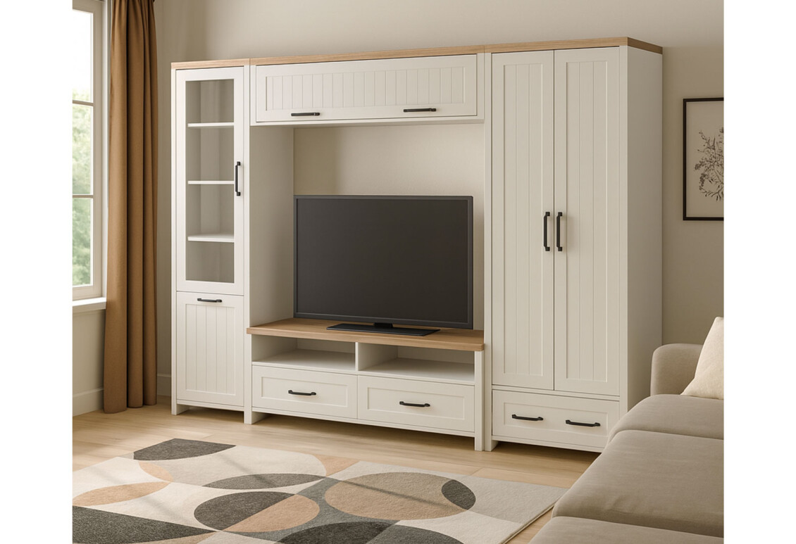 Гостиная Верне 2.9 является частью модульной системы, которая включает 12 различных товаров. Эта система предлагает вам возможность подбора мебели из различных категорий, таких как тумбы под TV, комоды, журнальные столики, столовые столы, шкафы и витрины. Благодаря модульной системе вы можете легко комбинировать элементы, создавая уникальный и функциональный интерьер, который будет отвечать всем вашим требованиям. Выбор мебели из одной серии гарантирует гармоничное сочетание стилей и материалов, что делает вашу гостиную не только красивой, но и практичной.