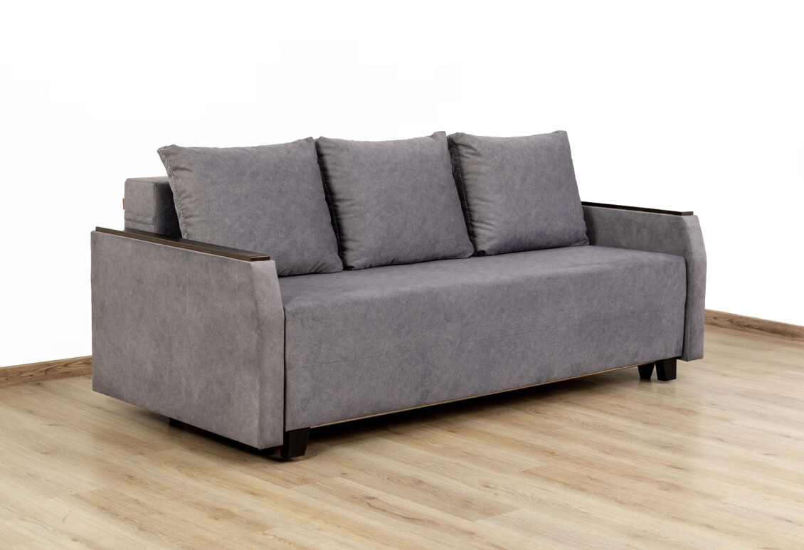 Механизм трансформации еврокнижка - один из самых популярных и более надежных. Трансформация механизма осуществляется за счет выведения сиденья на себя (выкатной или шаговый способ), вследствии чего освобождается место из вместительной нишей из-под сиденья. Тогда легко опускается спинка дивана и создается ровное спальное место.