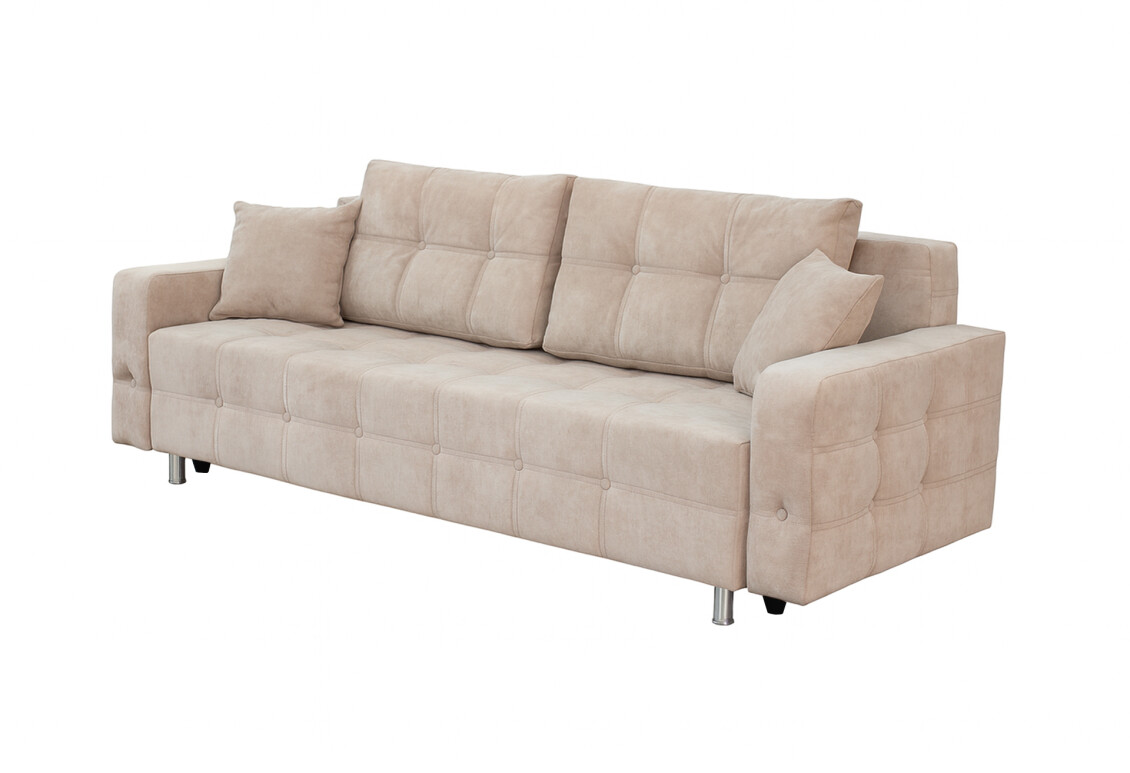 Одной из ключевых особенностей данного дивана является его трансформационный механизм «еврокнижка», который позволяет легко и быстро разложить его в спальное место размером 140х190 см. Это особенно удобно для гостей или для тех, кто хочет максимально использовать пространство. Наполнение дивана пружинными блоками обеспечивает отличную поддержку и комфорт, а наличие места для вещей позволяет удобно хранить постельное белье или другие мелочи, что особенно актуально в небольших помещениях.
