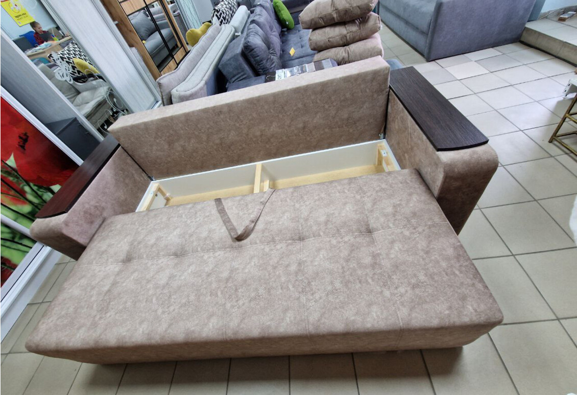 Механизм трансформации еврокнижка - один из самых популярных и более надежных. Трансформация механизма осуществляется за счет выведения сиденья на себя (выкатной или шаговый способ), вследствии чего освобождается место из вместительной нишей из-под сиденья. Тогда легко опускается спинка дивана и создается ровное спальное место.